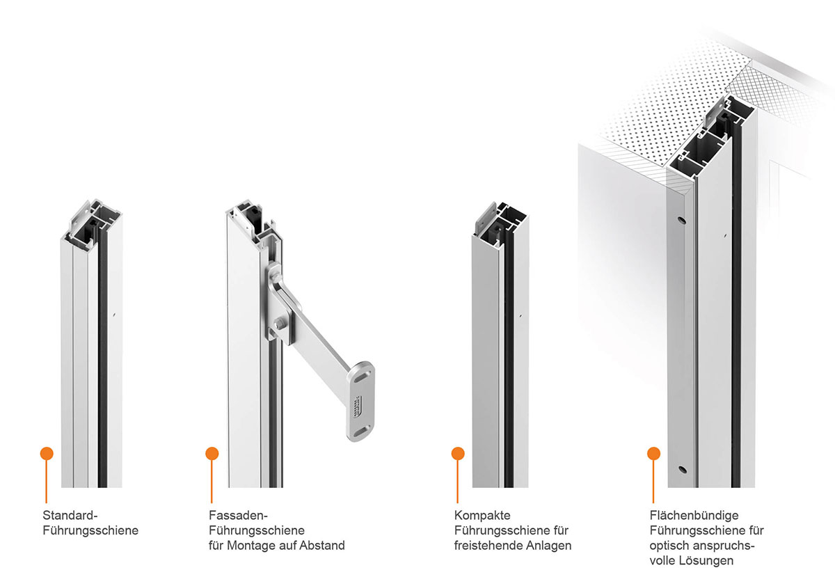 Acht verschiedene Führungsschienen – auch flächenbündig